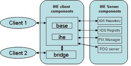 Client2 is the non-java application accessing the IHE client components through web services. These web services are implemented in the bridge component.